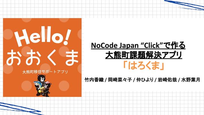NoCode Japan株式会社 (本社:東京都中央区、代表取締役社長:中川賢史朗、以下当社)は、株式会社Oriaiが主催し、大熊町と協働のもと実施された「おおくまハチドリプロジェクト」(以下本プロジェクト)において、ノーコードアプリ開発ツールである「Click」を活用した学生グループが審査員特別賞を受賞しました。