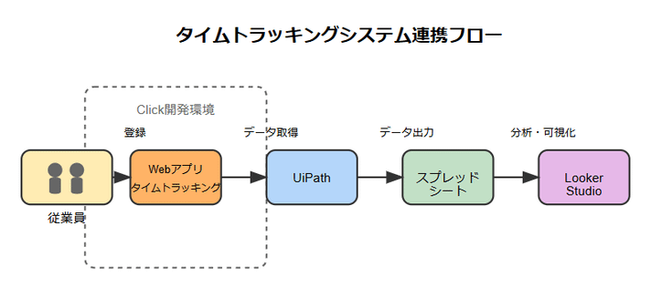 他のツール(Looker Studio)でグラフでデータが表示されるので、視覚的にわかりやすく、ぱっと見で状況を把握できるようになりました。これにより、『営業に思ったほど時間がかかっていない』とか、『事務処理に多くの時間がかかっている』といったことに気づく良いきっかけとなりました。さらに、業務分類を深堀りして見ることができるため、どの業務に時間がかかっているのかが明確に分かるようになり、その情報を基に、効率化を進める方法を検討する段階に入っています。