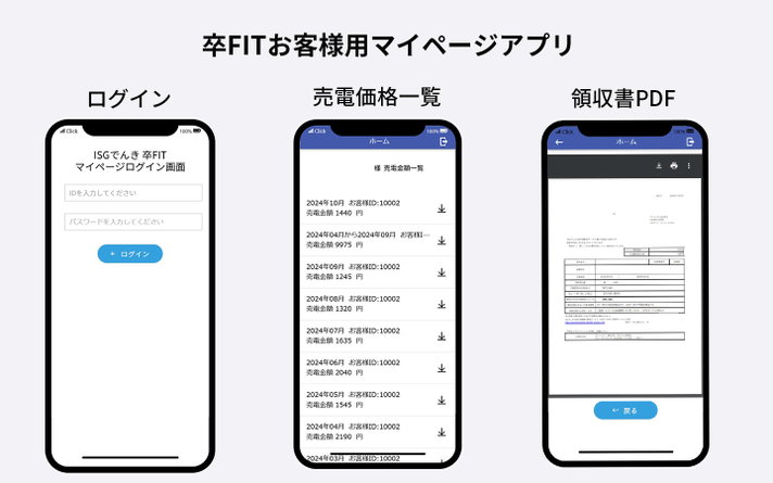 アプリ名:ISGでんき卒FIT買取サービスのお客様マイページ