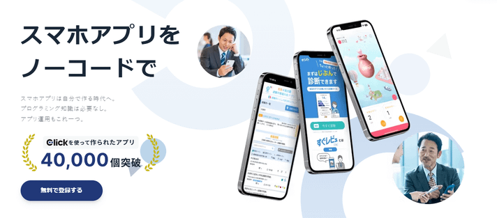 Clickは、ノーコードツールとして、プログラミングの知識がなくても直感的にウェブアプリケーションからネイティブアプリケーションまで作成できるプラットフォームです。ユーザーはドラッグ&ドロップで簡単にアプリを組み立てることができ、ビジネスアイデアを迅速に形にすることが可能です。まずは無料登録から!