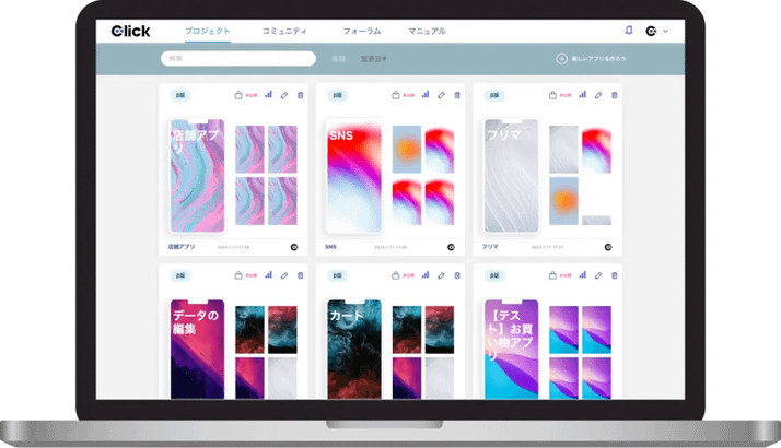 「Click」は、それでも無料で利用を開始でき、ドロップ&ドロップの直感的な操作などでアプリケーションの開発が可能です。また、使用方法・機能要望・バグ報告を自由に投稿できる場を設け、ユーザーの皆様にとってより使いやすいプラットフォームを目指し、改善を繰り返してきました。