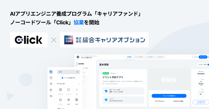 AIアプリエンジニア養成プログラム「キャリアファンド」、ノーコードツール「Click」協業を開始