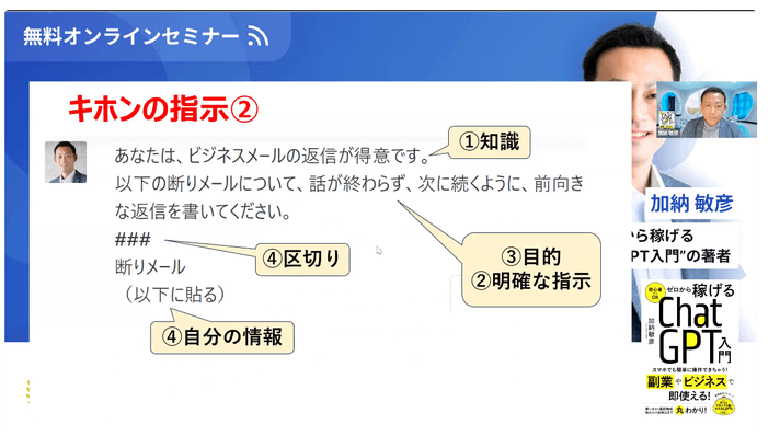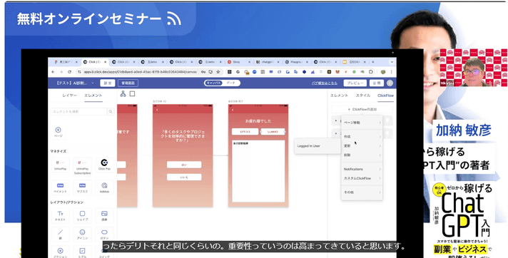 大人気ビジネス書籍【ゼロから稼げるChatGPT入門】の著者 加納敏彦様をゲストにお招きし、『ChatGPTの便利な使い方とClickとの親和性』をウェビナーにて開催いたしました。