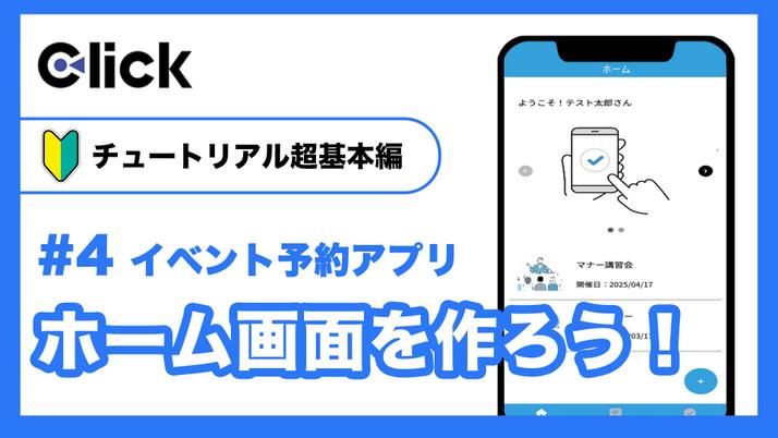 【最新版】超基本編④ホーム画面を作ろう - イベント予約アプリ/Clickチュートリアル動画を公開しましたので、ぜひご覧ください。