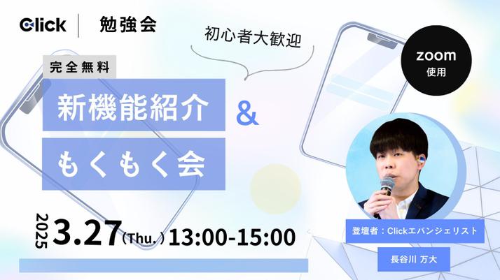 このたび、新機能リリースに伴い、Clickユーザー会「新機能紹介&もくもく会」を開催いたします。