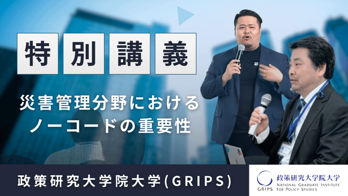 2024年11月8日、政策研究大学院大学(GRIPS)で、ノーコードでアプリ開発ができる「Click」の革新性と災害時の活用法について特別講義を行いました。政策研究大学院大学の片山耕治教授(以下「片山教授」)と当社CEOの工藤亮太(以下「CEO工藤」)、同CTOの中利弘(以下「CTO中」)が講師を務め、途上国を中心に集まった35名の学生が参加しました。