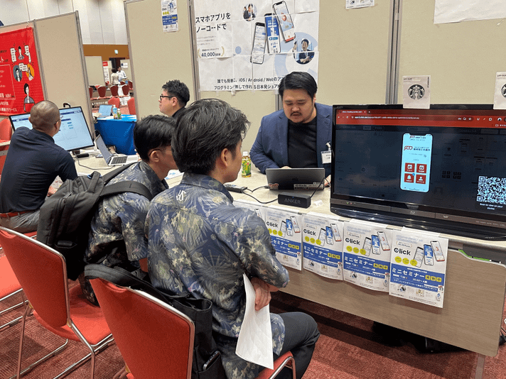 各商工会議所内では、DX課題解決に必要な人材不足が問題視されています。当社のブースには、この問題の解決を担当するデジタル化推進者・会員企業指導者の方が多く足を運ばれ、Clickを活用することで所内人員が自ら課題解決に取り組むことができるという展望に、特段のご関心を示していただけました。