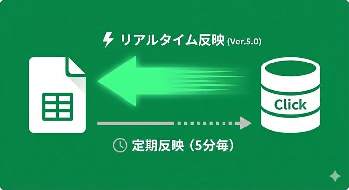 ※なお、Googleスプレッドシート → Click の反映は、引き続き5分毎の定期反映となりますのでご注意ください。