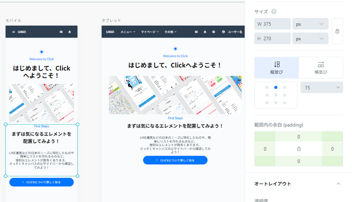 レスポンシブ機能内には、新たに「オートレイアウト」機能を搭載しました。